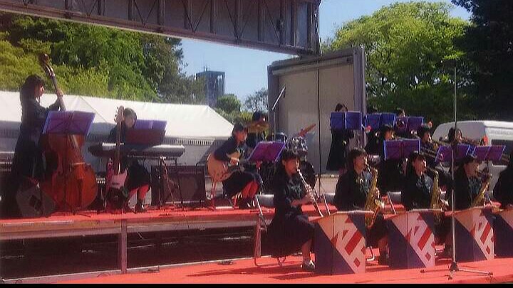 アルトサックスの恩賀部長さんが笑顔でメンバーを盛り上げてるのが印象的で、人数は少なめですがしっかりと音量は出ていたと思います!